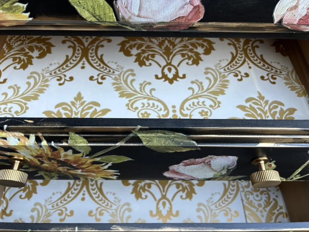 Stunning Gray & Silver Floral Half Round Cabinet